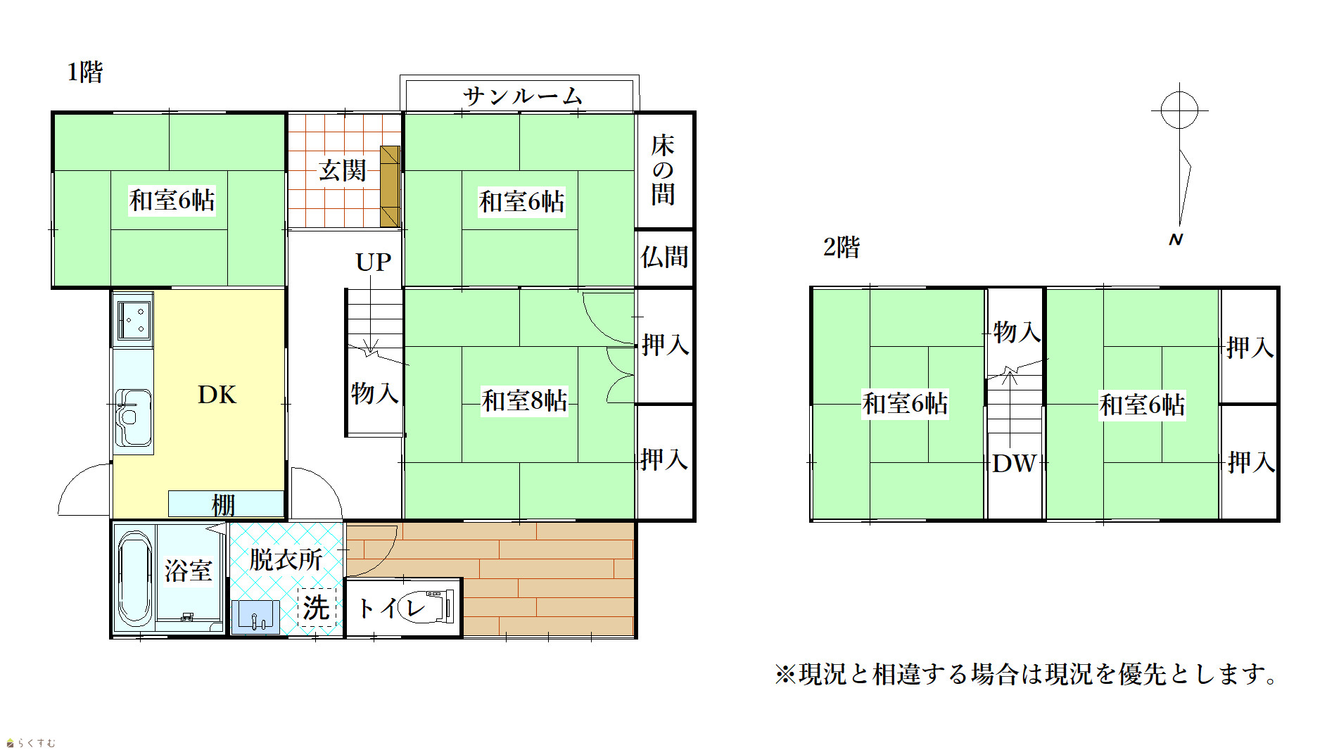 | 間取り | 5DK (和室:8畳、6畳、6畳、6畳、6畳) DK6 |