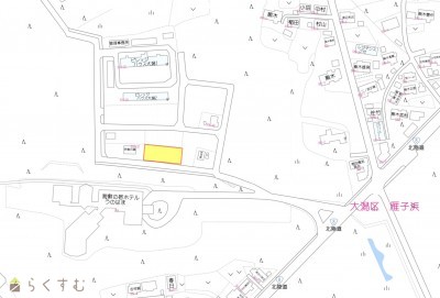 | 設備 | 南側道路面す、更地、建築条件なし、所有権、即引き渡し可、都市ガス(前面道路)、上水道(前面道路)、浄化槽、住宅向け | ||