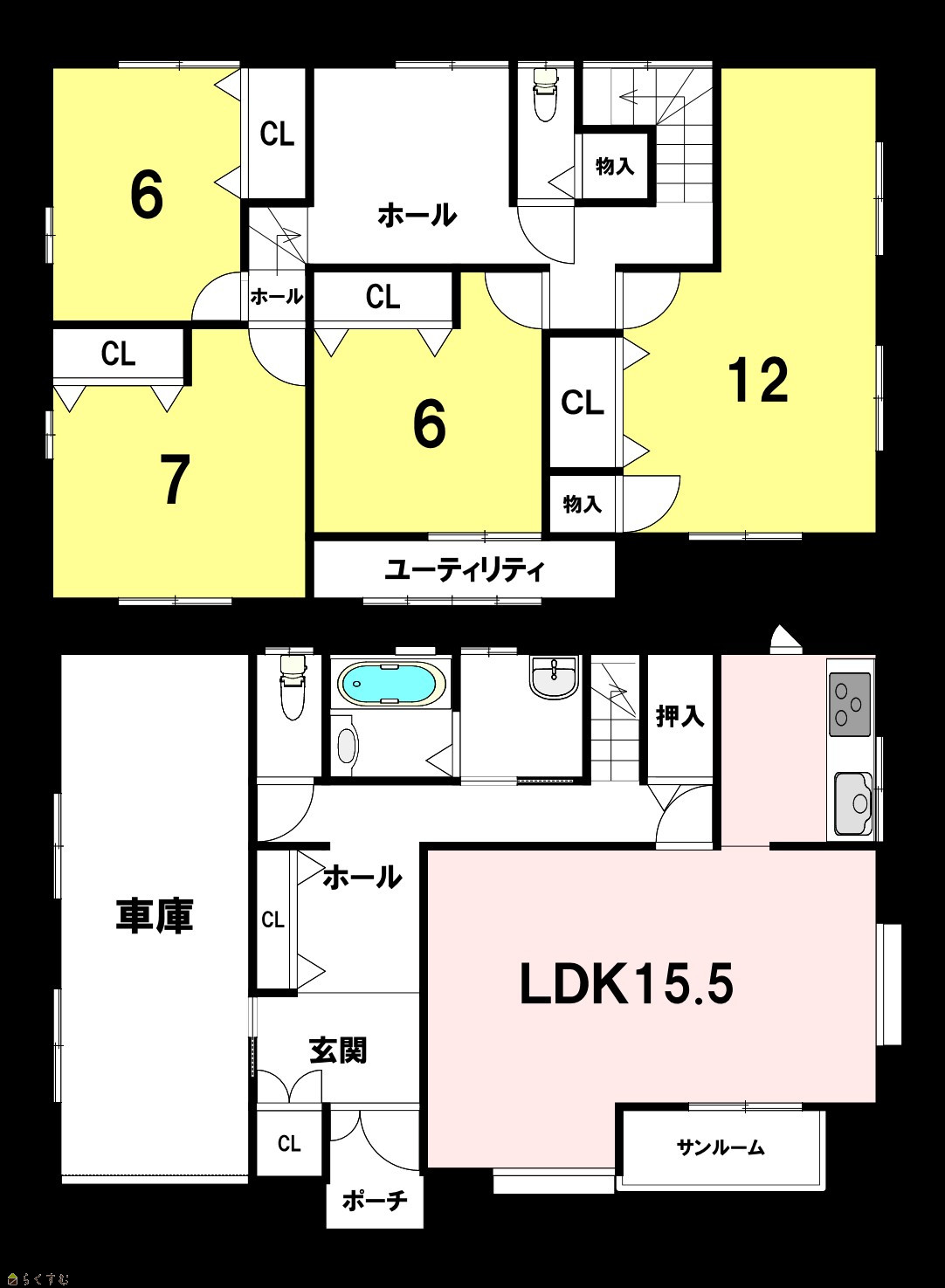 間取り | 4LDK (洋室:12、6、7、6) LDK15.5 |