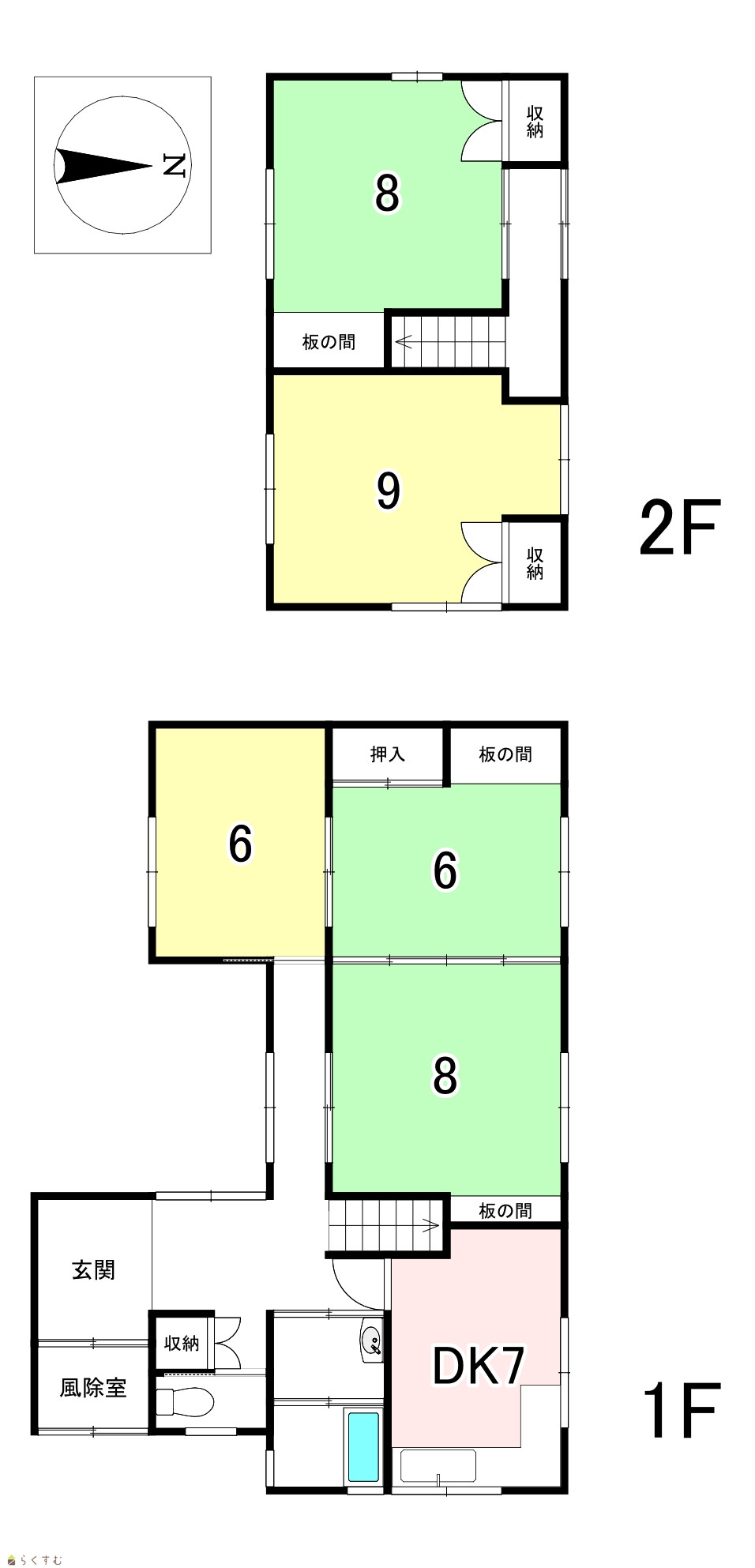 | 間取り | 5DK (和室:6畳、8畳、8畳) (洋室:6、9) DK7 |