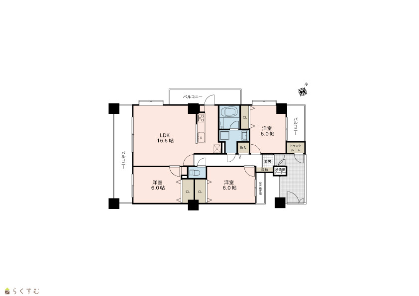 | 間取り | 3LDK (洋室:6.0、6.0、6.0) LDK16.6 |