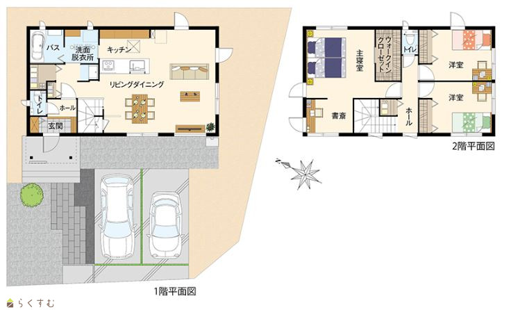 | 建物面積 | 1階 53.97㎡/ 2階 53.97㎡/ 計 107.94㎡ /32.65坪 | ||