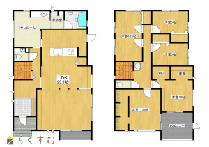 5LDK (洋室:11.25、8.25、10、5、5)、LDK29.9、サンルームあり