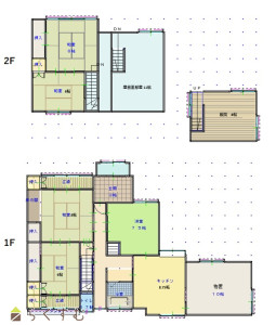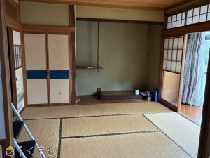 5DK (和室:8畳、6畳、8畳、6畳) (洋室:7.5)、DK 8.75帖、物置スペースから屋内が接続されています。