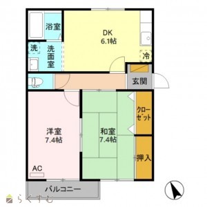 2DK (和室:7.4畳) (洋室:7.4)